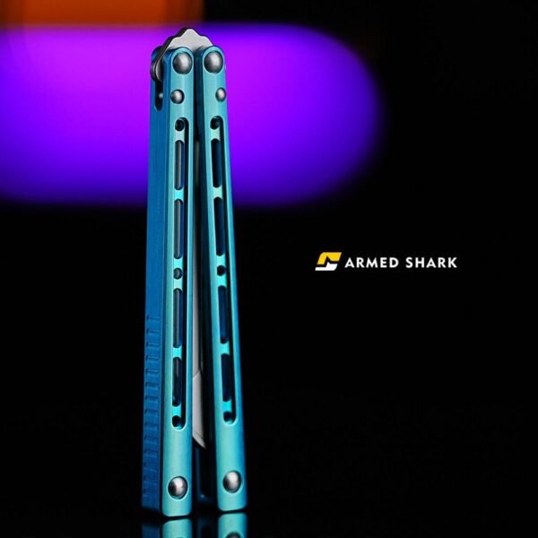 Introducing the Armed Shark Sentinel V2 Balisong, available in multiple colors. Featuring a more aggressive design and a hole-less blade that closely resembles a live blade profile, this high-end titanium Balisong delivers excellent balance, durability, and smooth flipping performance — perfect for both enthusiasts and professional flippers looking to elevate their skills with confidence and style.