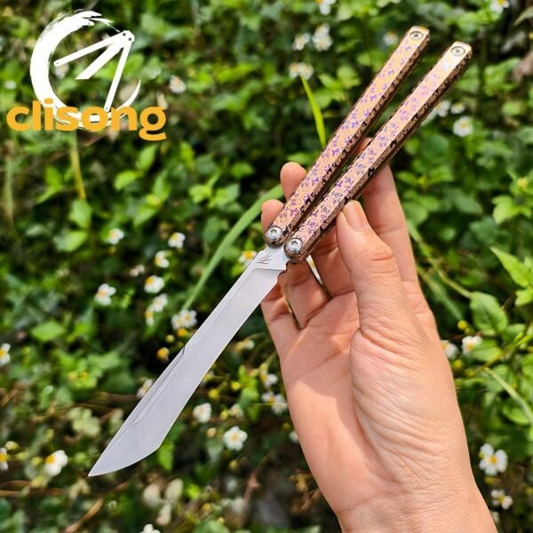 Introducing the Baliplus Gaboon Balisong Clone, designed with a perfect 1:1 ratio to the original. Its minimalist handle and striking blade offer a unique charm, while the inclusion of T15 screws adds both durability and style, making this clone a standout piece.
